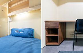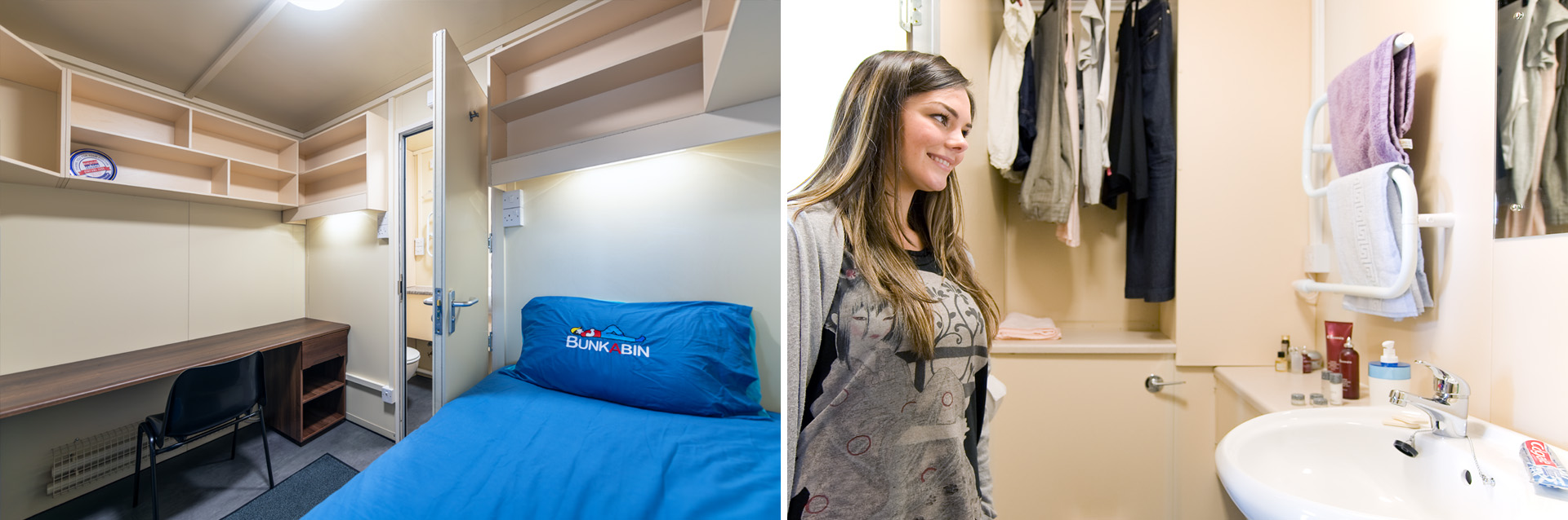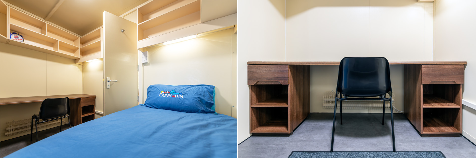 The largest single unit we manufacture and hire is a one-man Bespoke Sleeper, which is 2.870m x 4.325m, which is slightly bigger than the one-man Deluxe Sleeper by millimetres. Both units include an en-suite bathroom (shower, toilet and sink), full-size single bed, microwave, fridge, desk and a chest of drawers - but still feel extremely spacious.