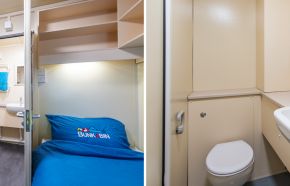 Available with one, two or three full-size single beds with mattresses, including over-bed lights. |